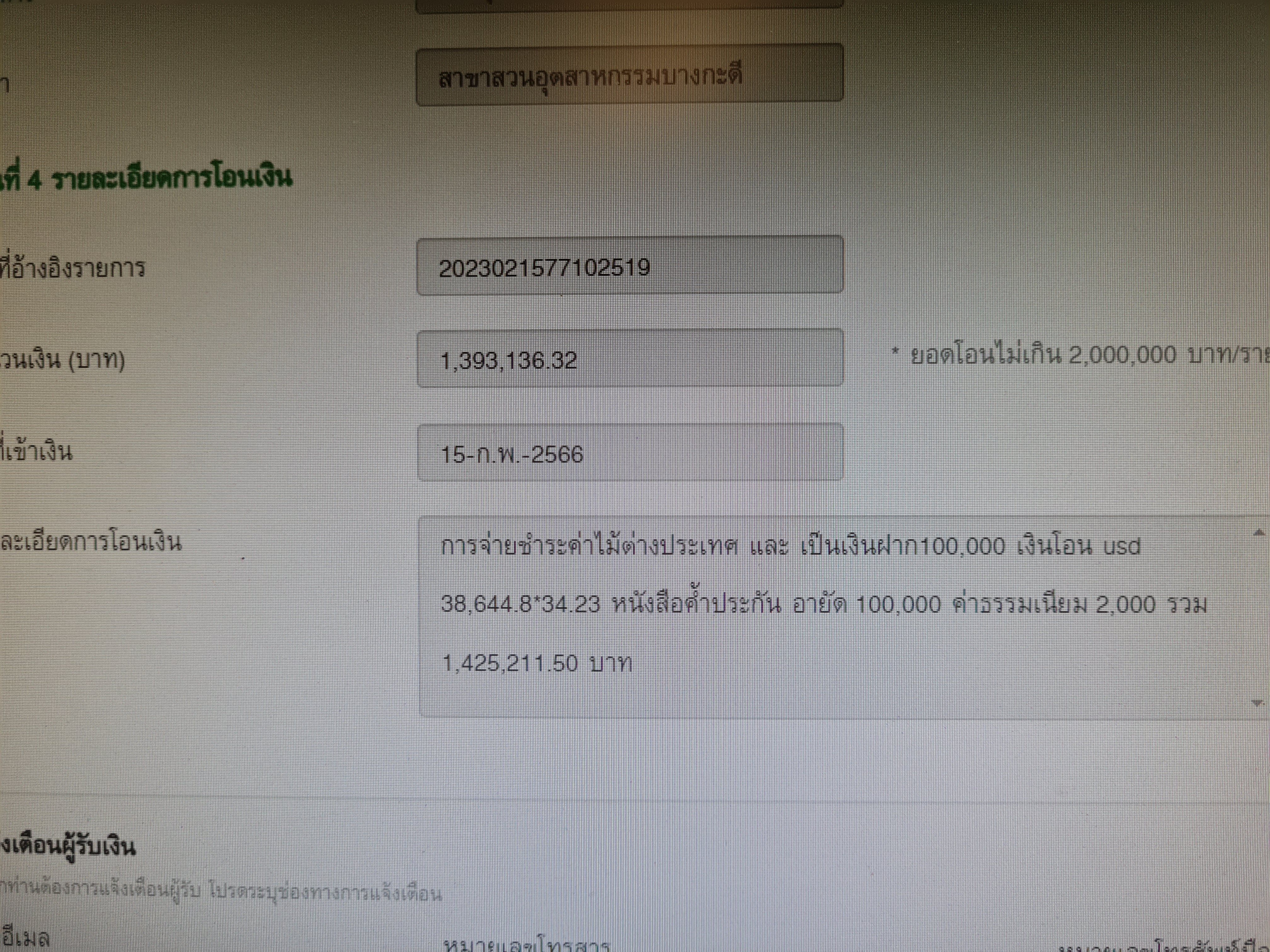 โอนระหว่างบัญชีไป bbl เพื่อออกBG น้ำมัน และชำระค่าไม้งวดสุดท้าย canada