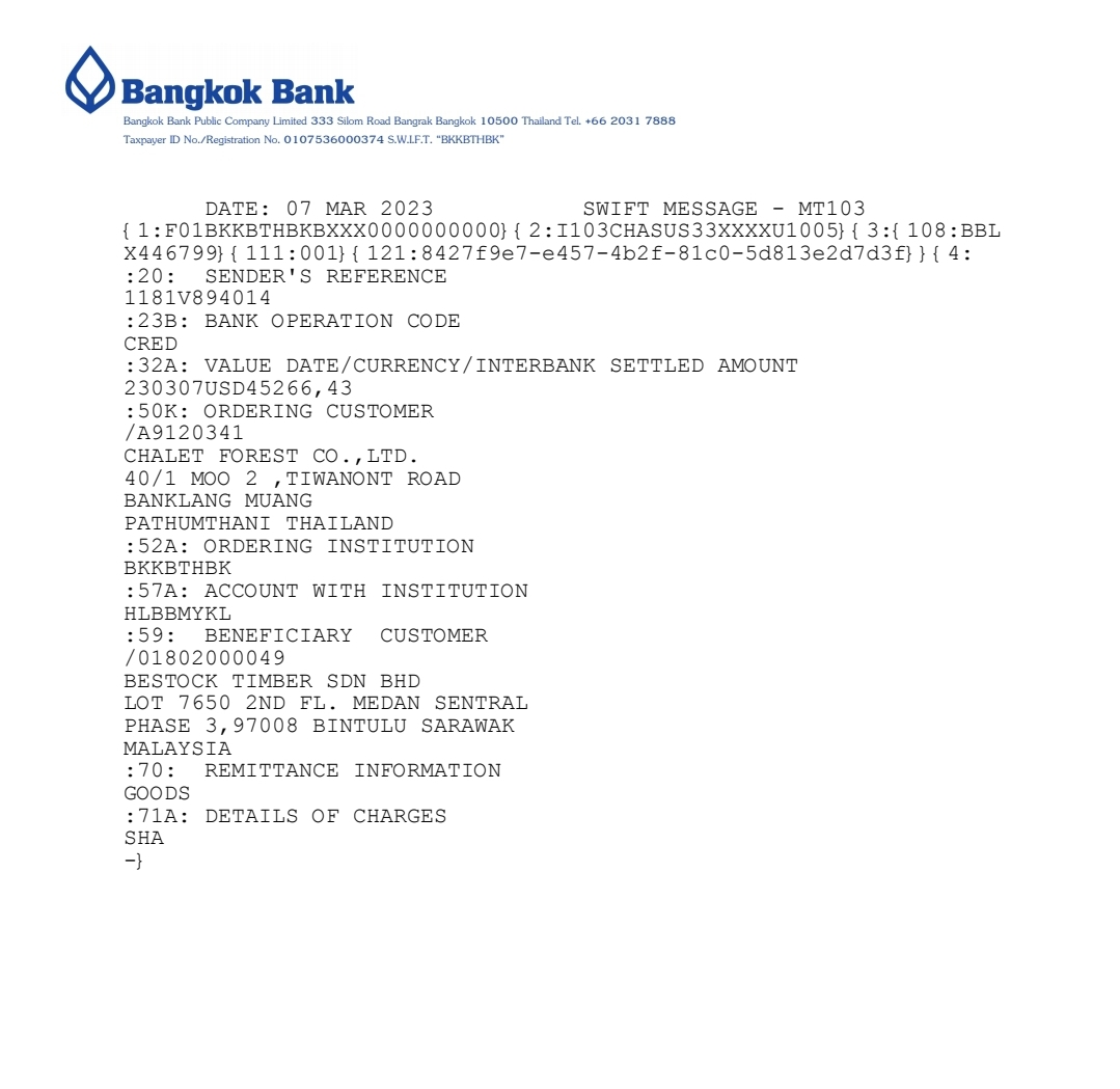 โอนไป bbl จ่ายไม้อัดมาเลย์ BESTOCK