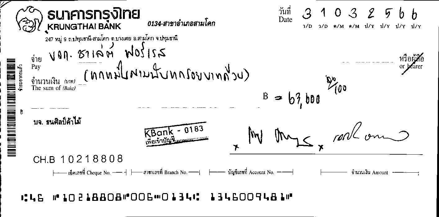รับเช็คพร้อมฝากธนาคาร บริษัท ธ [...]