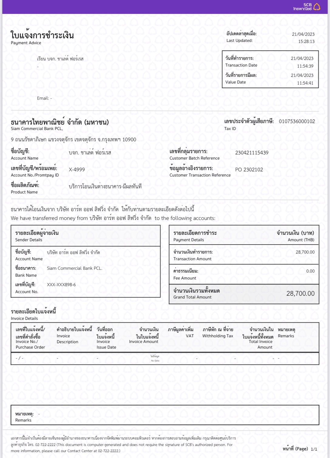รับโอน บริษัท อาร์ท ออฟ ลิฟวิ่ง จำกัด สาขาที่ 00001 ตัดชำระ INVPD2303-0001