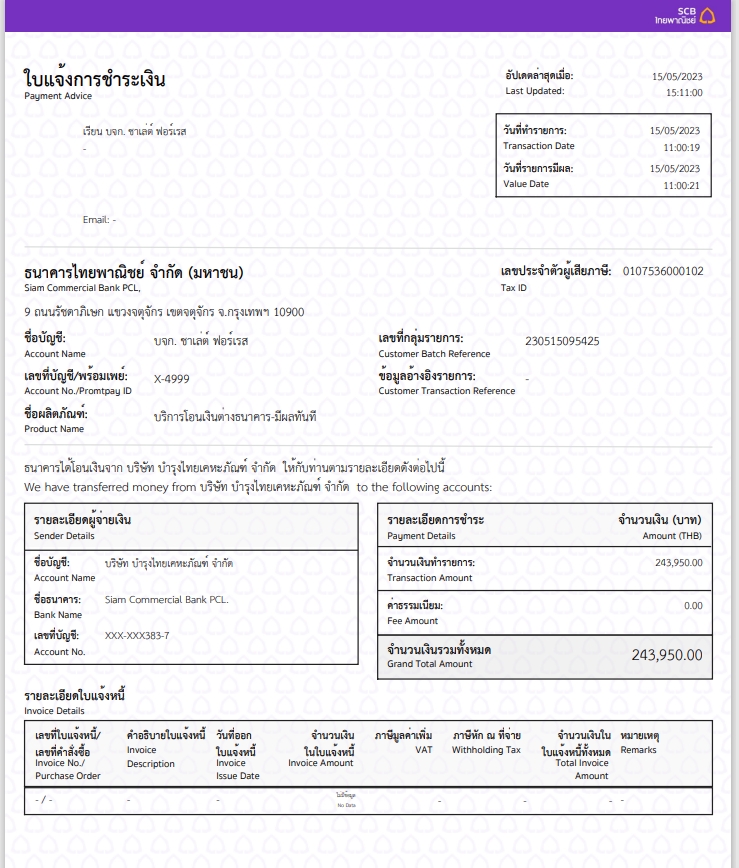 รับโอนจาก บริษัท บำรุงไทยเคหะภัณฑ์ จำกัด สำนักงานใหญ่ ตัดชำระ INVPD2303-0057