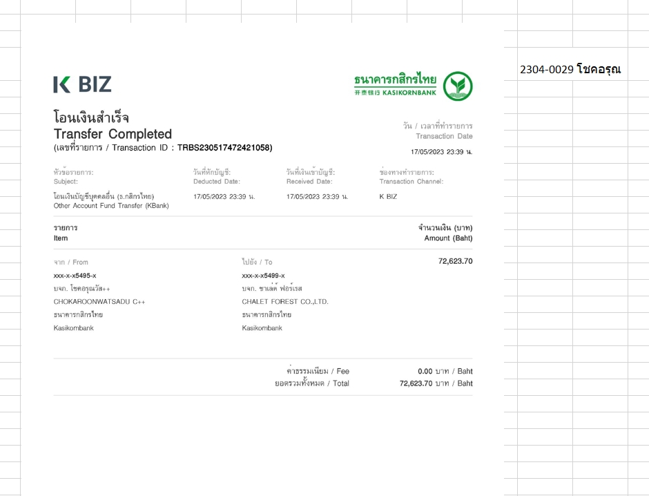 รับชำระจาก บริษัท โชคอรุณวัสดุ จำกัด สำนักงานใหญ่ ตัดชำระ INVPD2304-0029