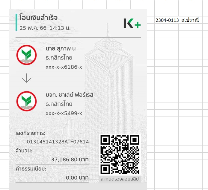 รับชำระ ห้างหุ้นส่วนจำกัด ส.ปราณี(คอนกรีต) สำนักงานใหญ่ ตัดชำระ INVPD2304-0113