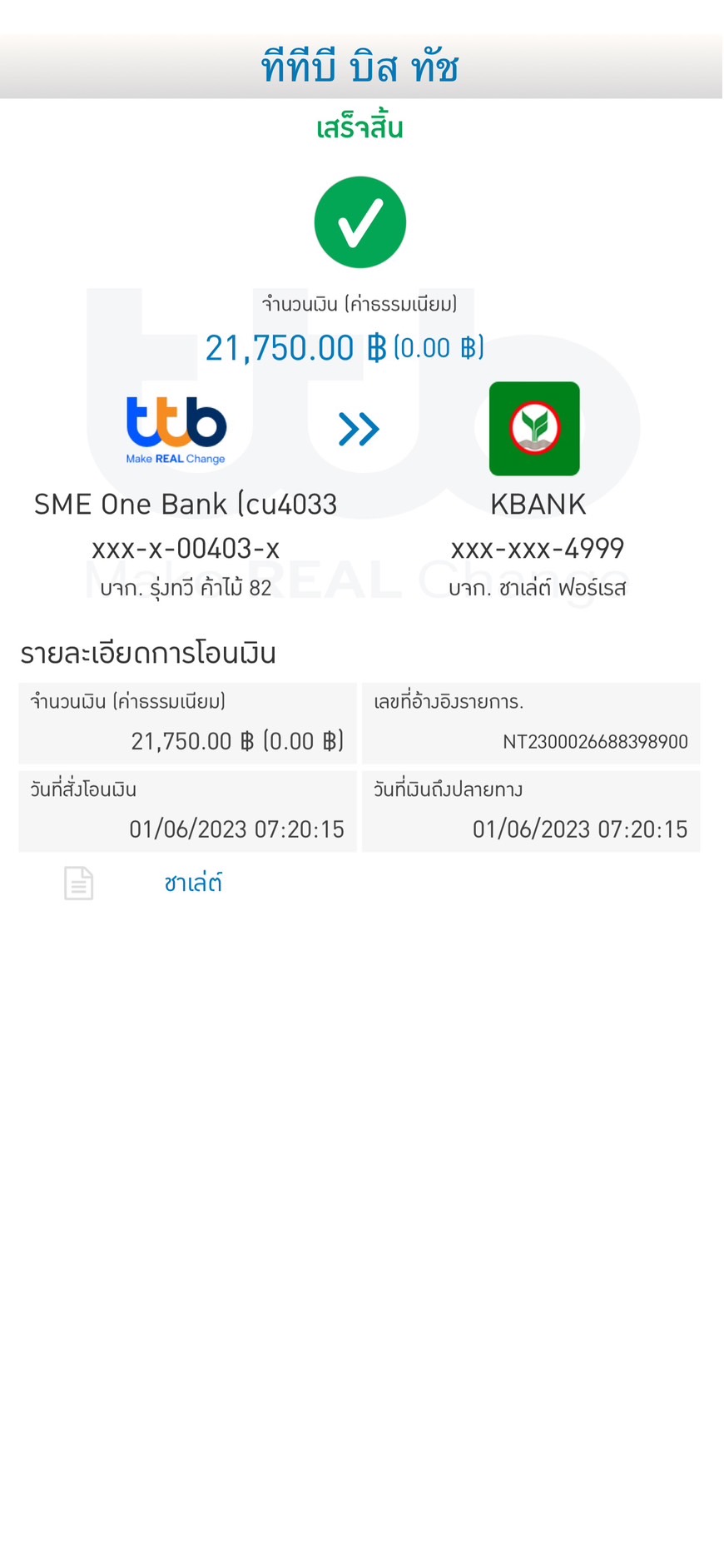 รับชำระจาก บริษัท ชาเล่ต์ ฟอร์ [...]