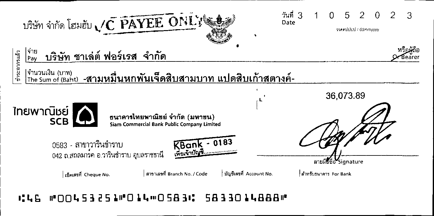 รับเช็ค ฝากเช็ค บริษัท โฮมฮับ [...]