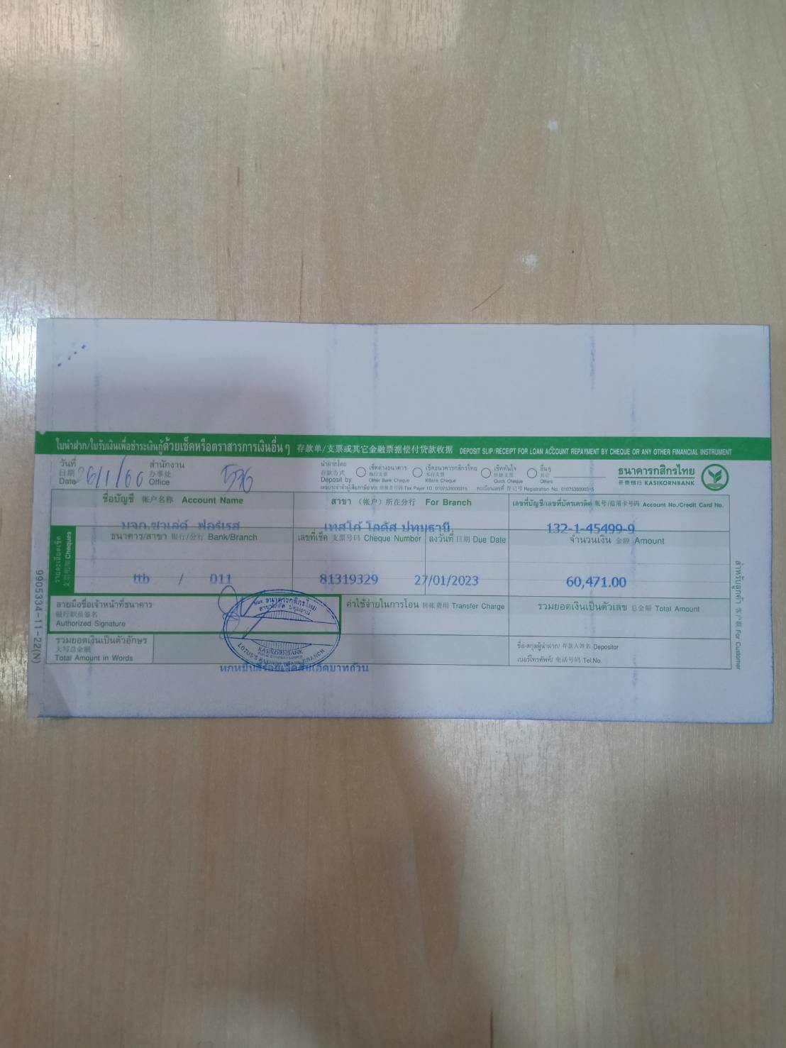 ฝากเช็ค รุ่งทวีค้าไม้ ลงวันที่ [...]