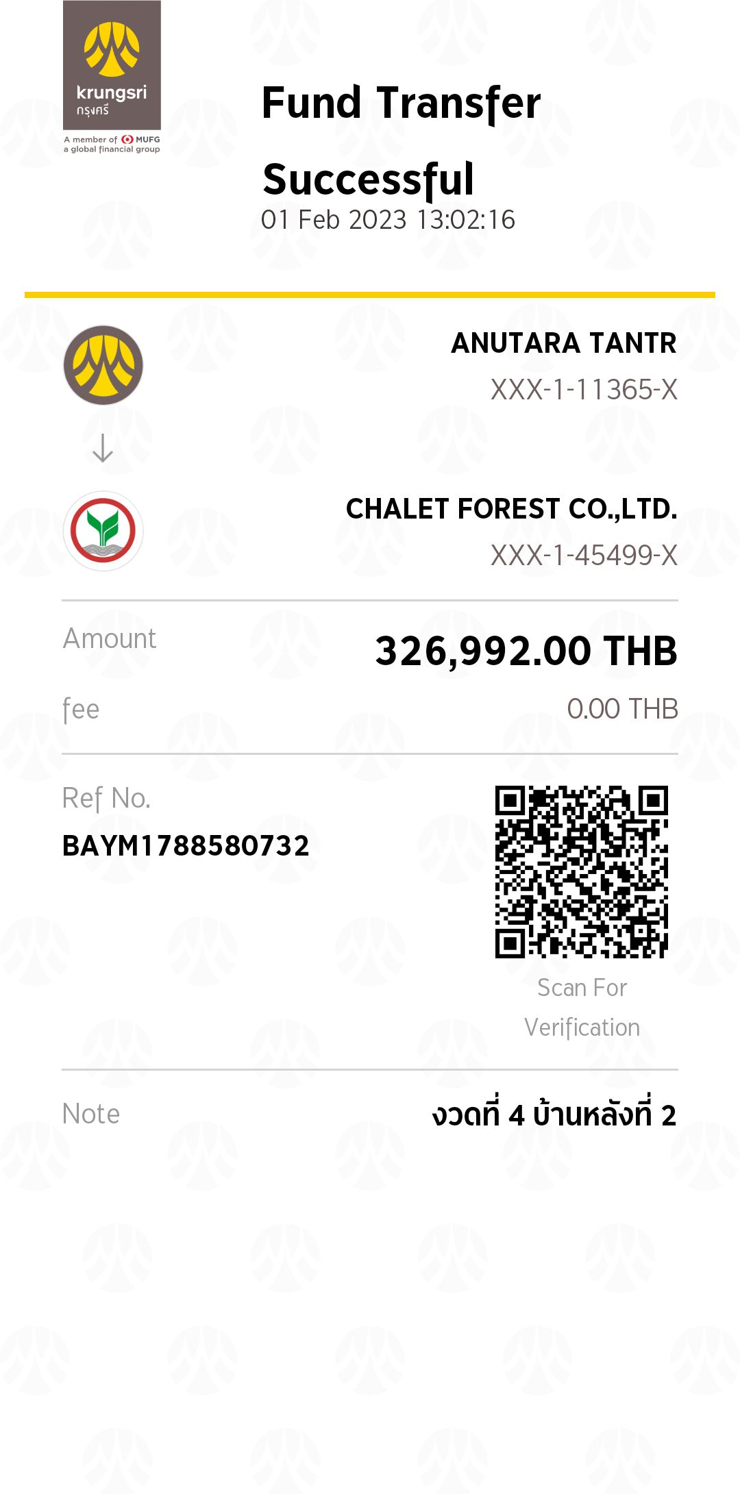 รับเงินโอน บ้านอนุตร หลังที่ 2 [...]