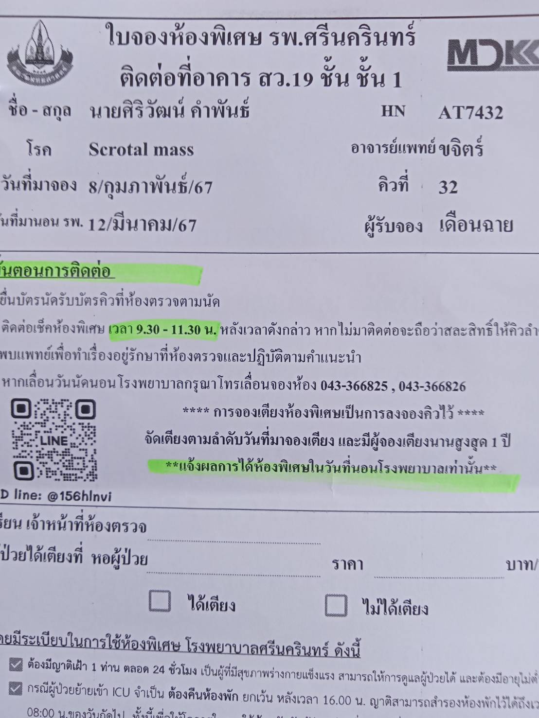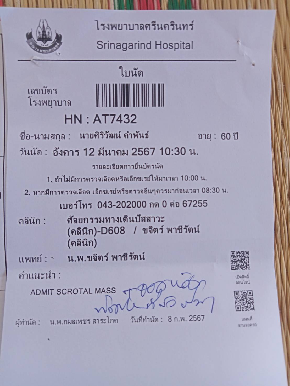 วัน12และ14/3/67 ขออนุญาติลางานพาพ่อไปผ่าตัดที่ โรงพยาบาลศรีนครินทร์จ.ขอนแก่น ครับ