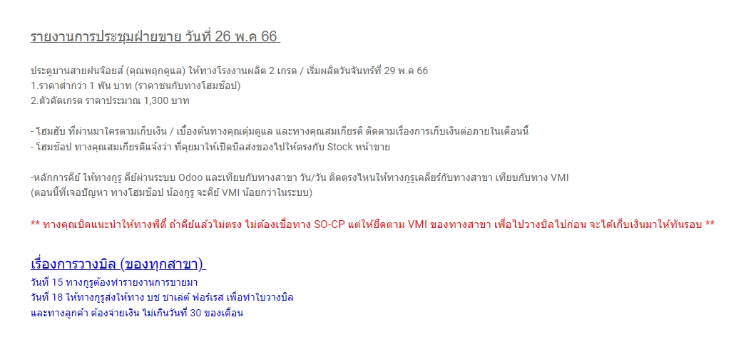 รายงานการประชุมฝ่ายขาย วันที่ 26 พ.ค 66