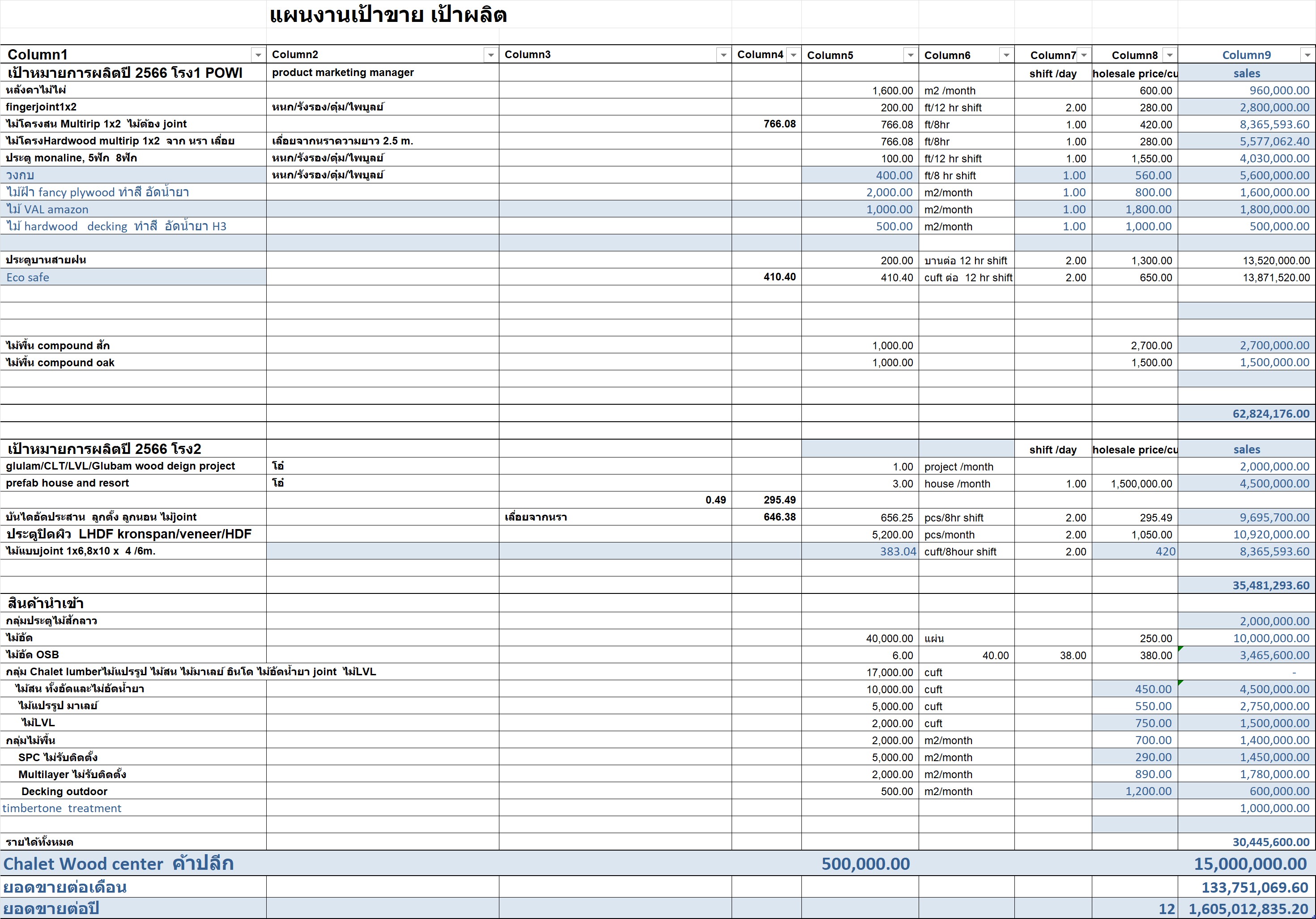 แผนการผลิต ทางคุณ ช้าง แจ้ง ในที่ประชุม เรื่อง แผนงานเป้าหมาย การผลิต เป้าหมาย การขาย