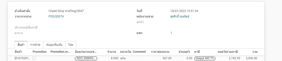 14 / 1 / 2566 [ พนักงานชื่อ ตฤ [...]