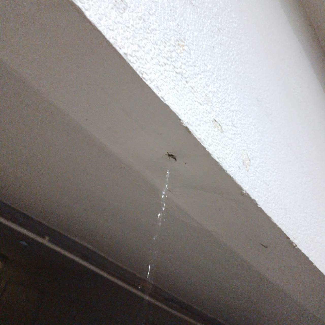 - กวาดน้ำที่รั่วจากหลังคาทั่วพื้นร้าน - กลางร้าน