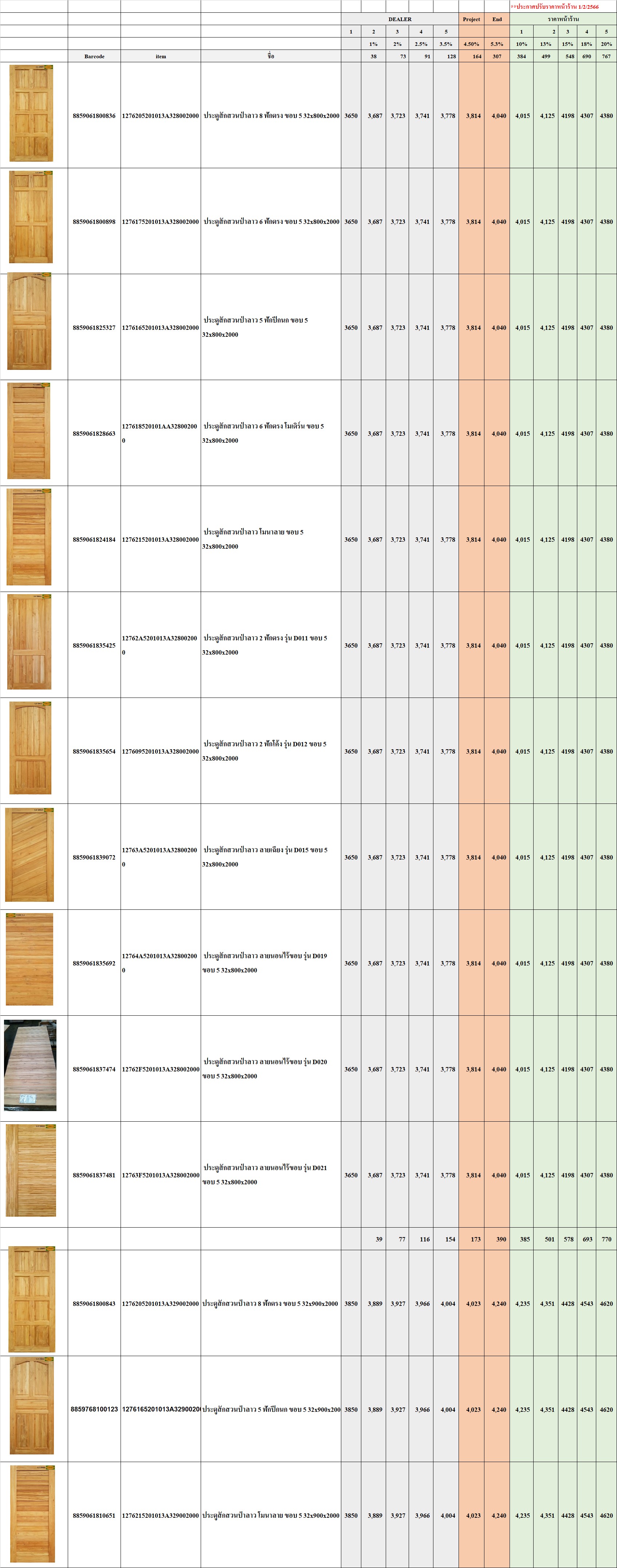 TO All จากที่ประชุมคุณบิค 1/2/66 ราคา update ประตูสัก และ รูปแบบแต่ละลายคะ