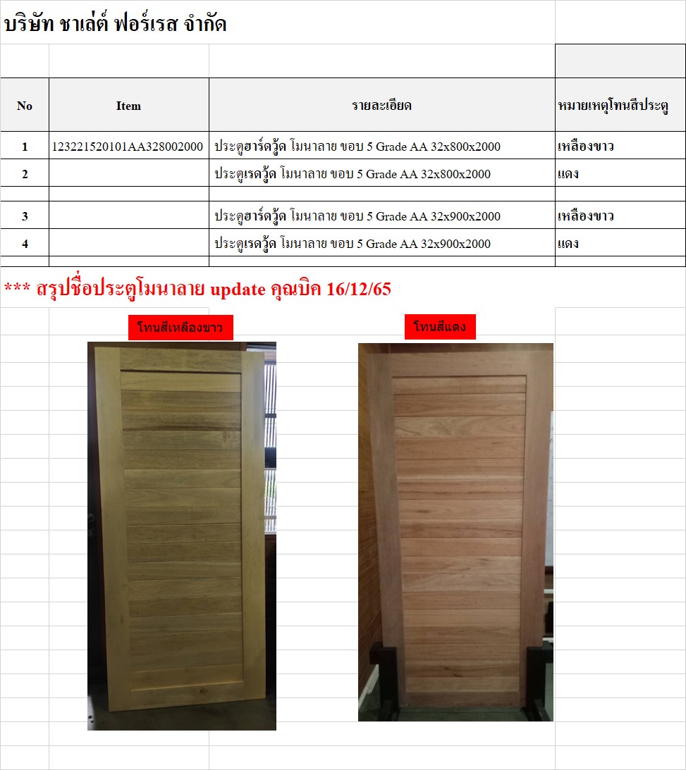 @ผู้จัดการ Supply chain/ผู้ช่วยกรรมการผู้จัดการ เรียน พี่เปิ้ล สรุปชื่อประตุโมนาลายในที่ประชุมกับคุณบิค 16/12/65 ตามนี้คะ แยกโทนสีขาวเหลือง และแดงใช้ฮาร์ดวู้ด และ เรดวู้ด คะ